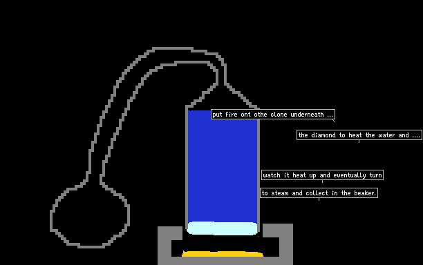 it evaporates water by puting fire on the clone and making it heat the water. follow the instructions on the screen.