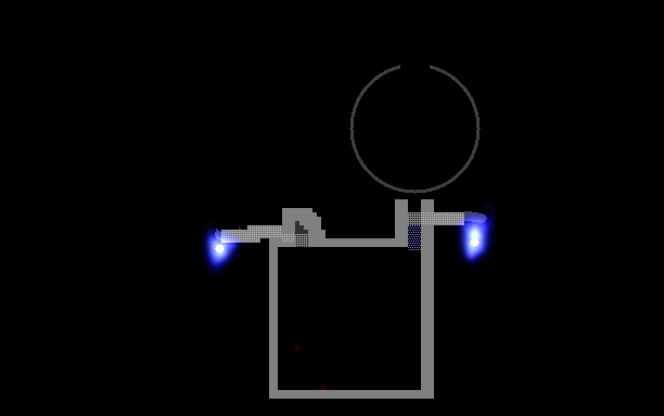 Fill container with any gas. Spark to left to empty chamber. Spark to right to send gas out. Fill higher chamber with ANYTHING. Based off of wirebenderboy's original design