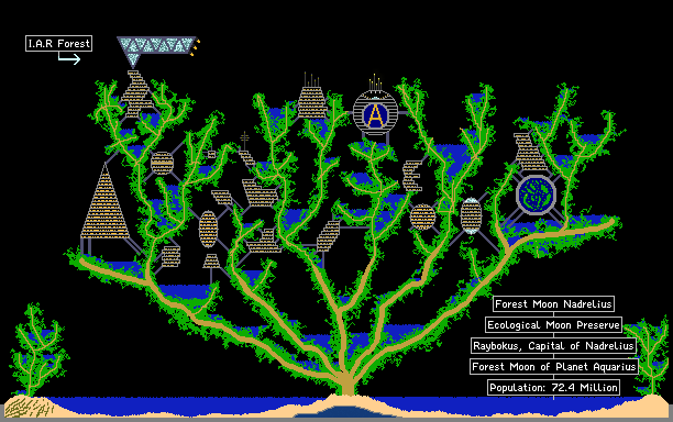 Nadrelius is the Ecological Preserve of the Imperial Atlantian Empire. Te moon has large deposits of deuterium and plutonium but is protected from mining. The capital, Raybokus, is built into one of the millions of massive 7 kilometer trees on the moon