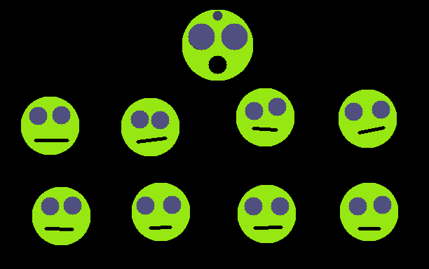 Spark the dot on the big alien's head to watch their eyes glow.