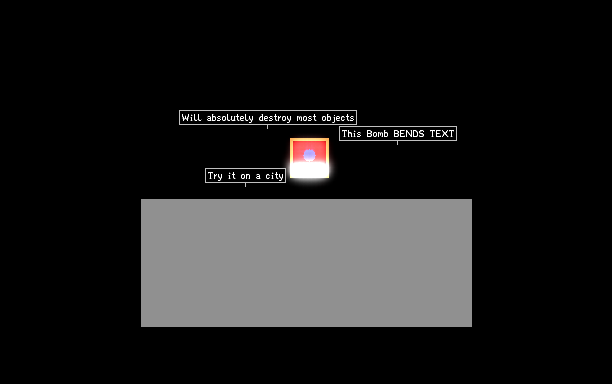 This bomb is so incredibly powerful, it will desimate almost any material, made with superheated protons, Gravity Bomb, and Deuterium, it rekts shit. Will also warp text or paint, not sure how...