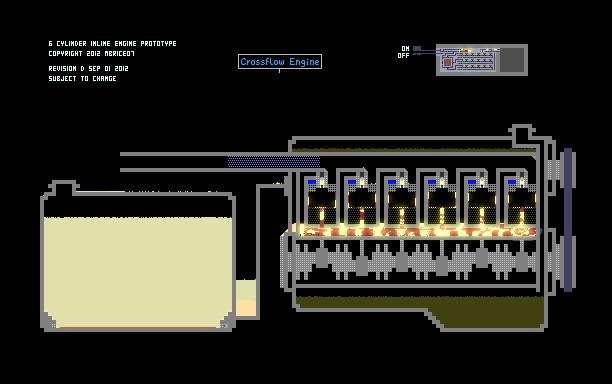 6 Cylinder Inline Engine (Overhead Cam, EFI "Gas/Petrol" Type Motor). Inspired by Mitsubishi 4G54 Engine Design. On Startup, Spark Plugs are pre-heated before combustion begins. Pre-Ignites when run on DESL causing undesired operation.