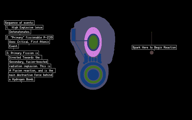 A simple version of a W88 Fusion Warhead, used by the US Naval Trident D-5 Ballistic Missile. There is a Primary Fission charge, which is directed into the Fusion Secondary charge.