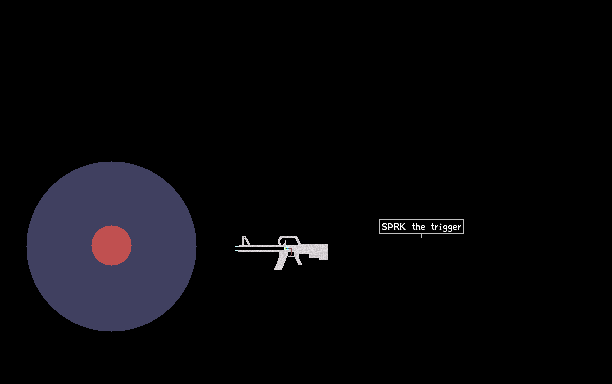 Fires BOMB! Place a piece of destructible material in front of muzzle and spark the trigger.