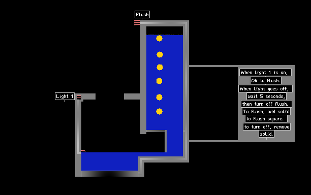 Add something to the red square at the top to flush, remove to end the flush!