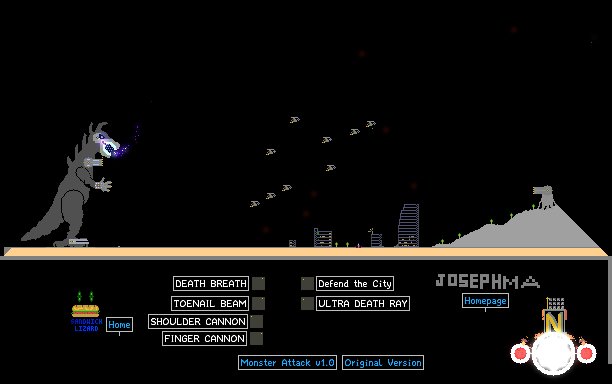 Monster by Sandwichlizard. City by JosephMA. Mountain top Death Ray by natstar. Upgraded version by SatanicTitanic. This isnt mine, the original creators are on top.