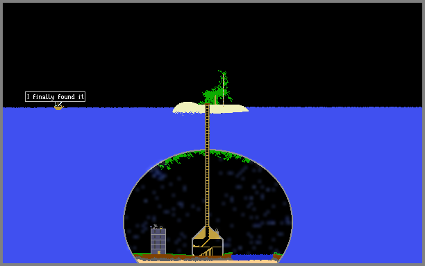Lost island with under home, ledder hidden in bush.