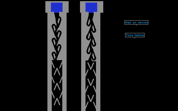 Tesla valve test with water. Credits to Devastheempty. Exactly this save will not work with air, it should be build with walls and on larger scale. Also doesnt work with continious flow, which should actually stop liquid.