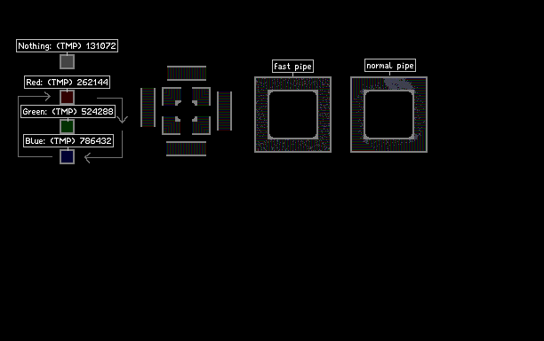 each color has a variation which behaves exactly as the other one but they don't intersect so you can make even more efficient pipes