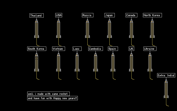it's rocket with different countries so i will made all countries in happy new years