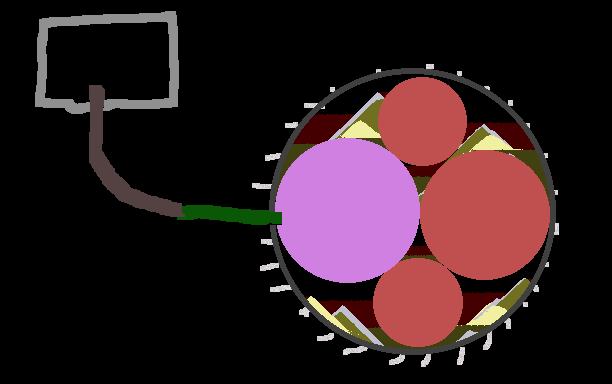 This is my own spin on a bomb that is activated via sparks and works like a grenade that can spread plutonium and little shells that can hit other people penetrating them.