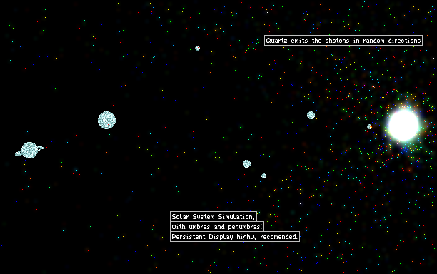 Simple Solar System model with a Sun that emits photons in all directions due to the usage of Quartz, therefore, the phenomena of umbras and penumbras! Can also be done with a normal, Neutron producing Clone.