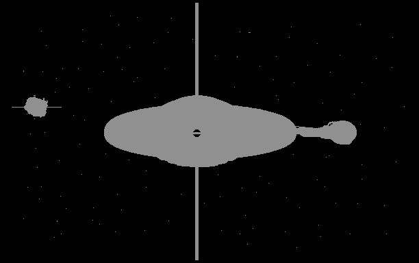 (mass: 87188 solar masses) (updates:added a type B star being pulled apart by the black hole, added a supernova on the left)