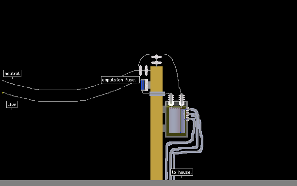 here is high voltage going down to house voltages. the fuse can be blown by adding cold flame next to it.