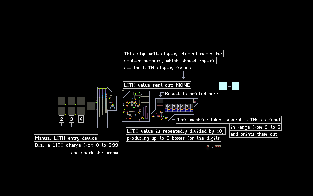 This is an example pipeline that takes a LITH particle with a manually dialed charge, decodes it into several boxes containing the digits, and after prints it out.