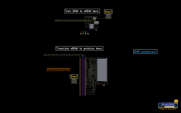 you could try make it take a supply of blocks that act as amino acids and are able to stack next to eachother in different ways to fold into a shape with an active site, however i feel it is a stretch