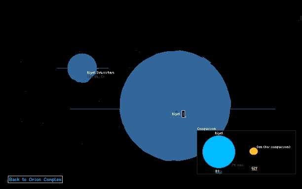 The Rigel System is a quarternary stellar system located 850 light years away in the equatorial constellation of Orion. The main component, Rigel [A] has a spectral type of B8Ia being around 200.000 times brigher than the Sun.