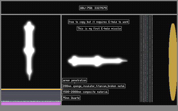 The GBU-75 Bunker buster, this is my first E-hole missile/bomb and it is very powerful, its real life ammount of pen is about 2000mm-4500mm, free to copy hope you enjoy