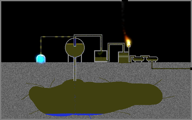 A fracking operation with oil prosessing and storage. (yes I know that the terrain is bad)