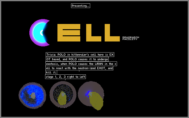 This is the cell research facility (CRF), dedicated to researching the GRVT-driven, circular lifeforms of TPT! I'll be posting on all three major branches from here.