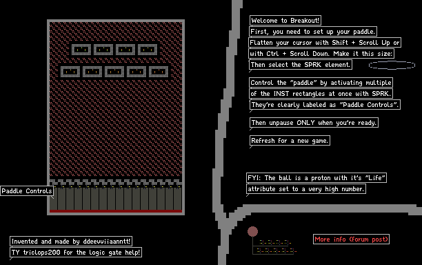 It's a proof of concept, so it could be better. Someone should make it spawn a ball on demand so that its direction is randomized. So that you aren't just playing the exact same game again and again.