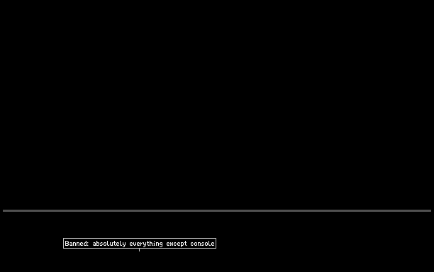 Wait everything except console is banned? Oh holdup *Insert typing sounds of me typing in !set type all none*