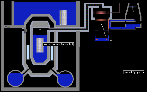 boiling water reactor version 5. now realistic with newer technology. updates comming soon. uranium version, you can use air, vacuum to control the rate of fission. Updated: heat transfer and ECCS added, bigger and stronger torus and safety vessel.