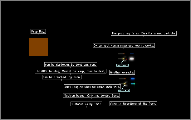 A prop ray, Is an itea for a new particle, Acts like a prop ray, Tmp4 is tistance, Setting it to any value like life 154 On this, When it is activatet by pscn, It will set its own value of 154 life on the other Particle, Like 246 life, 15 tmp Set to exot