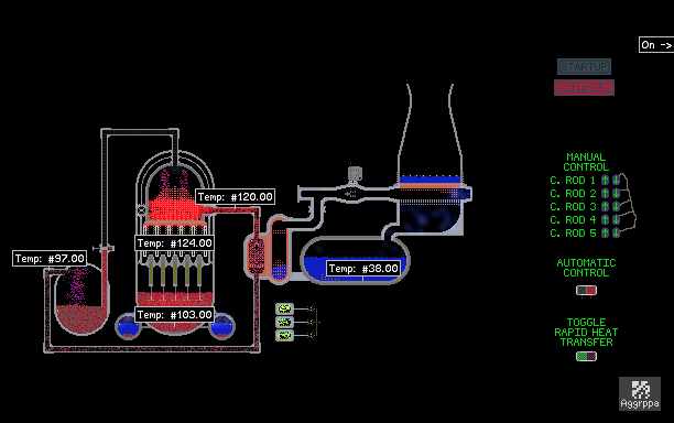 Fully controlable rods and automatic (crude) temperature control system. Tried creating this without using any walls and kinda worked. ALL CREDITS TO ORIGIONAL CREATOR and copilot lol. I just added temperature moniters so you don't need to hover.