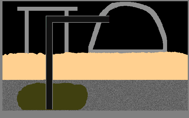 This is a very basic oil rig that has a pipe sucking oil through a galvanized steel square and into an oil drum. Just unpause, and it begins!