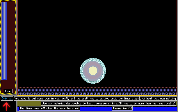 A reentry challenge. You have to build a craft that holds some wax, and survives for 1 minute, without letting the wax melt. You can use anything that can be destroyed by heat, pressure or fire. UPDATE: Now with a timer