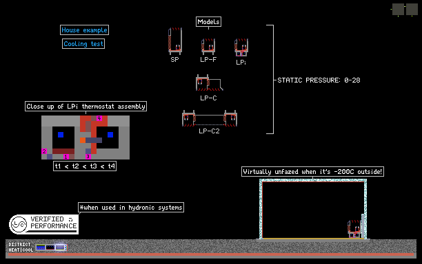 Dianleng Jetcoil is a lineup of fictional induction beams and perimeter induction units. The LPi model includes a built-in thermostat, while the others allow you to bring your own heating/cooling source. Adjust outdoor temperature in top right.