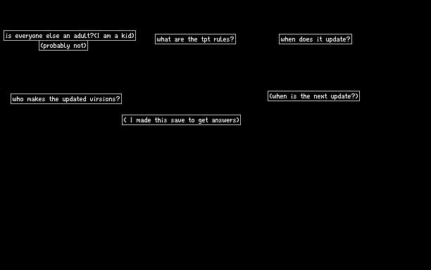 There are other non-adults. the game updates once every never, by that i mean it takes a long time. the next update will prob take like 5 months to 3 years to come, the devs are the one who make the updates. the rules to TPT can be found on the TPT wiki on "https://powdertoy.co.uk/Rules.html" altough i am unsure weather these are the real rules as i have forgotten much. I hope that helped