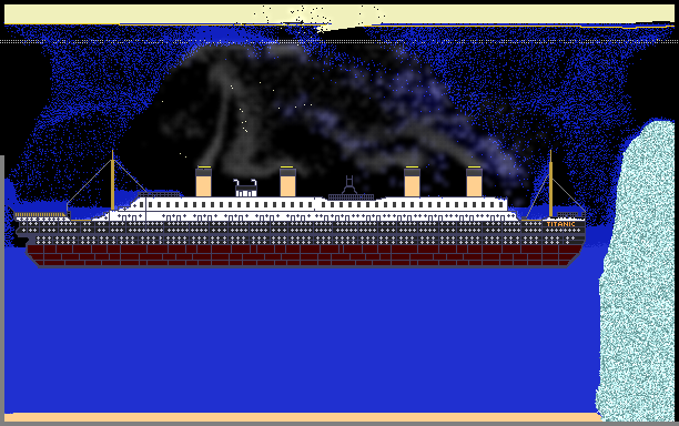 titanic with ice and smoke ani
