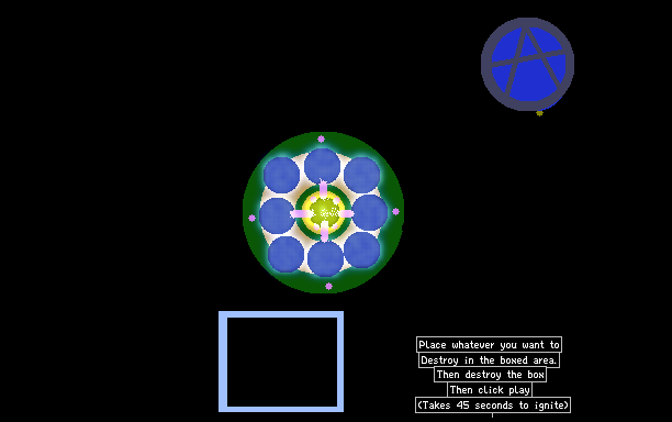 A bomb that ignites with a shaped charge to fire a wide beam of super-heated water at the target box. Explosion time of 40-50 seconds and a temperature of 3000 degrees approx.