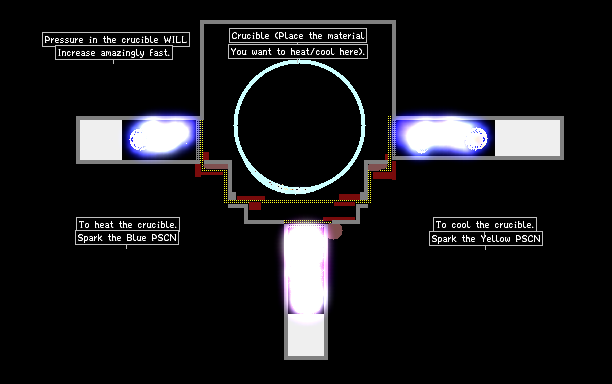 Spark the respective PSCN's to heat/cool the material you place in the crucible.