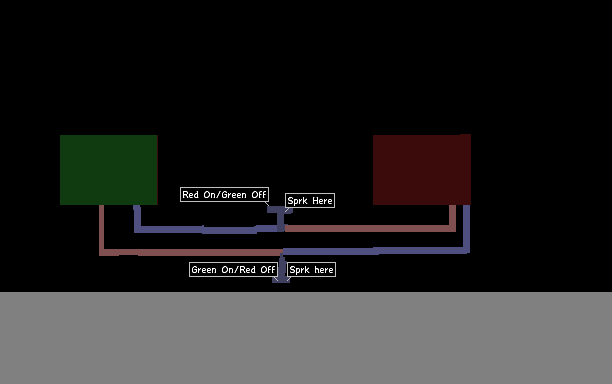 green red light sprk just one vire in center on metal