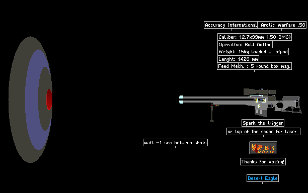 NEW AND IMPROVED: Shoots single bullets. Wait ~1 sec after each shot. Its self cocking, i could make a manual cocking mech, but this is nicer IMO. Note: This is not the AWP known from counterstike lol.