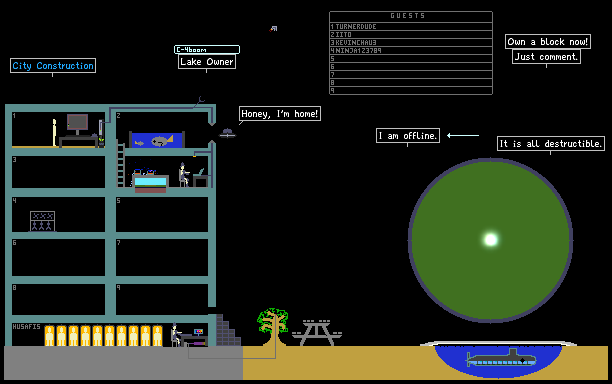 It will overlook a park, and a lake! Construction begins today! Thanks to SLUG14 for person. In iito's room, spark below nuke to detonate.