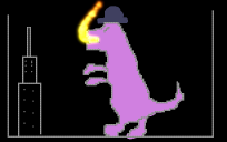 dino with hat attack city
